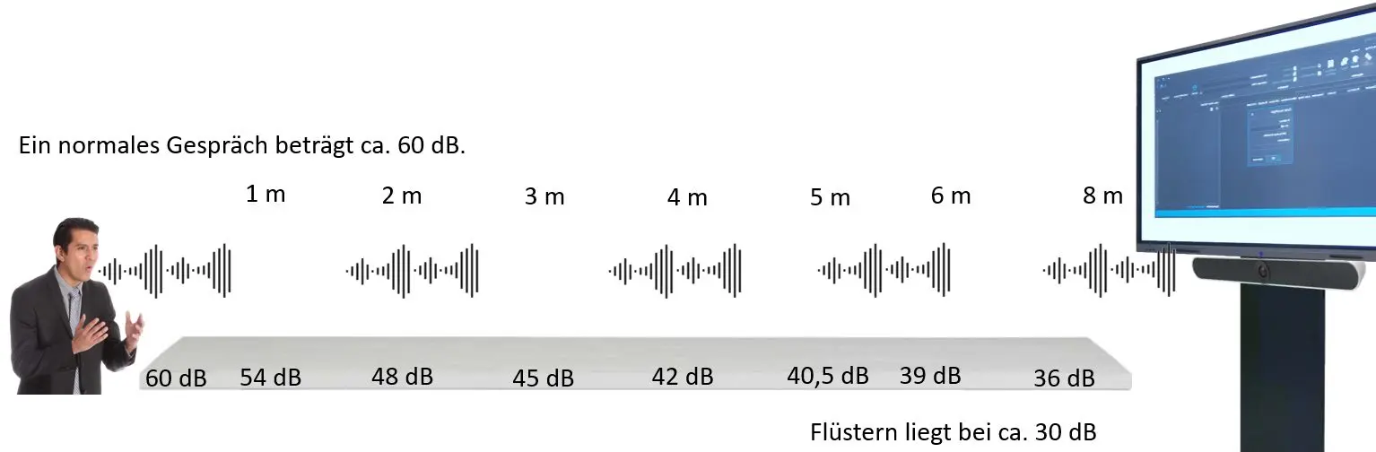 Ist das Mikrofon näher am Sprecher, verringert sich der Hall und die Verständigungs Qualität nimmt zu.
